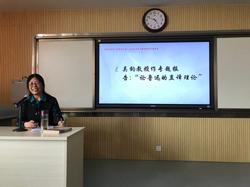 启动仪式完毕后,伟德国际1946官方网站祁连学者、特聘教授吴钧作了题为“论鲁迅的直译理论”的学术报告。吴钧教授从鲁迅直译理论形成的历史背景谈起,认为鲁迅最早提出了“异化”的直译主张,进而阐述了鲁迅的“翻译不仅要移情,也要益智”、“译文要保存原作的异国情调、洋腔洋调”、“翻译文学不仅仅要注意语言形式的转换,更要注意输入新鲜的内容、新鲜的表达法”、“宁信而不顺”等翻译思想和策略。然后,吴教授与听众分享了鲁迅直译理论的翻译实践与当代启示,并对在座师生的提问做了耐心细致的解答。
