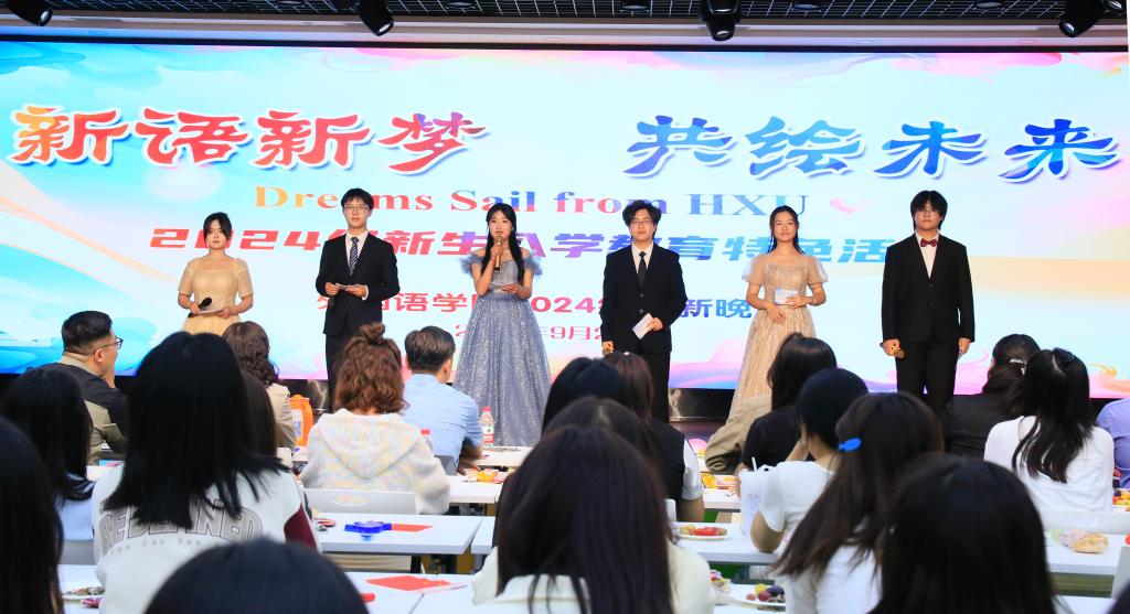 之后,公司以“新语新梦、共绘未来”为主题,举办了一场精彩纷呈的迎新晚会,旨在激发新生的爱党、爱国、爱人民情怀,同时传达了二十届三中全会的精神。晚会上,新生们以饱满的热情参与其中,通过一系列精心策划的节目展现了他们的青春活力和创造力。一首首歌曲如《少年》、《Forever》等,唤起了观众对梦想和未来的憧憬;诗歌朗诵《我骄傲,我是中国人》激发了同学们的民族自豪感;每一个节目都充满了对青春的赞美和对未来的憧憬。