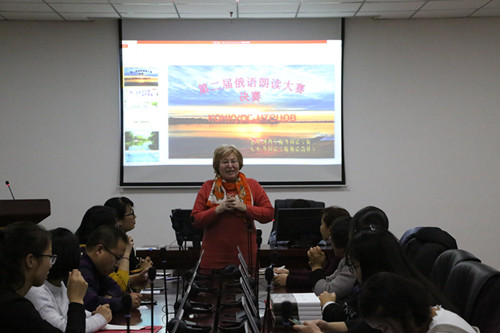 1120日晚730,bv伟德国际1946“第二届俄语朗读大赛决赛”在文科实训楼503室举办。本次比赛由bv伟德国际1946主办,俄语教研室承办。莅临本次比赛的嘉宾和评委有:bv伟德国际1946李虎副经理俄罗斯外教Светлана Георгевна以及俄语教研室全体教师。