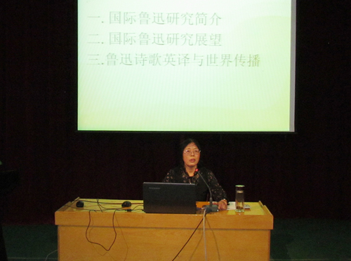 吴钧教授围绕国际上鲁迅研究现状、趋势以及鲁迅诗歌翻译与世界传播等方面详细阐述,从中凝练出了鲁迅“翻译即人生”、鲁迅文学翻译理论的基础——“中间物”思想。她指出,鲁迅“取今复古、别立新宗,求新声于异邦”,鲁迅诗歌翻译必将沟通中国与世界的进一步联系,也必将与鲁迅小说翻译一样,为丰富世界民族文化之林提供多方面的借鉴。