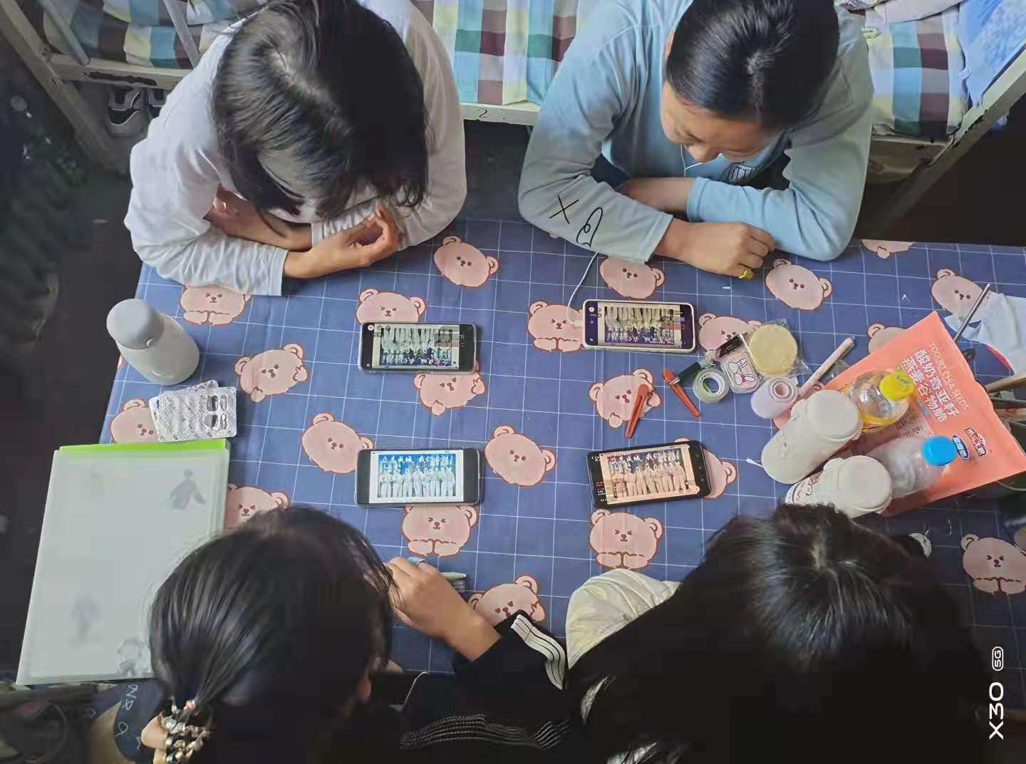 活动共三个环节:第一个环节是分享抗疫英雄人物事迹。小组代表通过视频连线的方式分享抗疫英雄人物事迹,使同学们再次对新冠肺炎疫情有了新的体会和思考,全体同学对作为一名共青团员的责任与担当有了更清楚的认识。共青团是党的后备军,在疫情面前,我们当发挥出共青团的力量,聚力齐行,同心抗疫;第二个环节是串唱抗疫歌曲。同学们带着激动的心情共唱抗疫歌曲,更坚定了同心抗疫的决心;第三个环节是播放身边抗疫工作者视频,展现他们美丽的身影,积极宣传他们的奉献精神。
