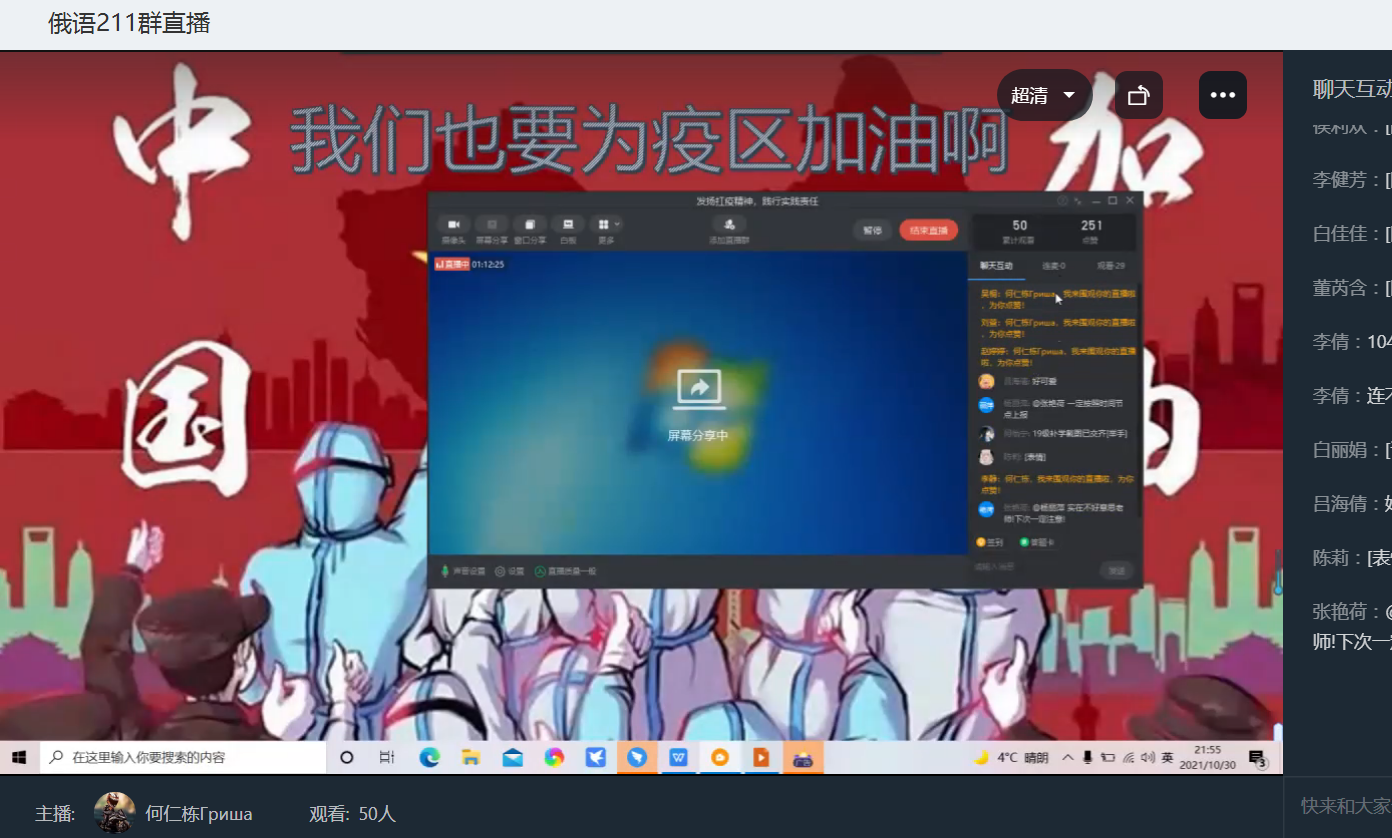 为使同学们对“万众一心共同抗疫”的团结精神有进一步的体会,锤炼意志品质,努力提升自我,10月30日俄语211班开展了钉钉线上主题团日活动,全体同学、班主任以及公司其他班级的团学干部,也参与了此次活动,全体同学积极配合,踊跃展示,活动开展顺利,收效良好。