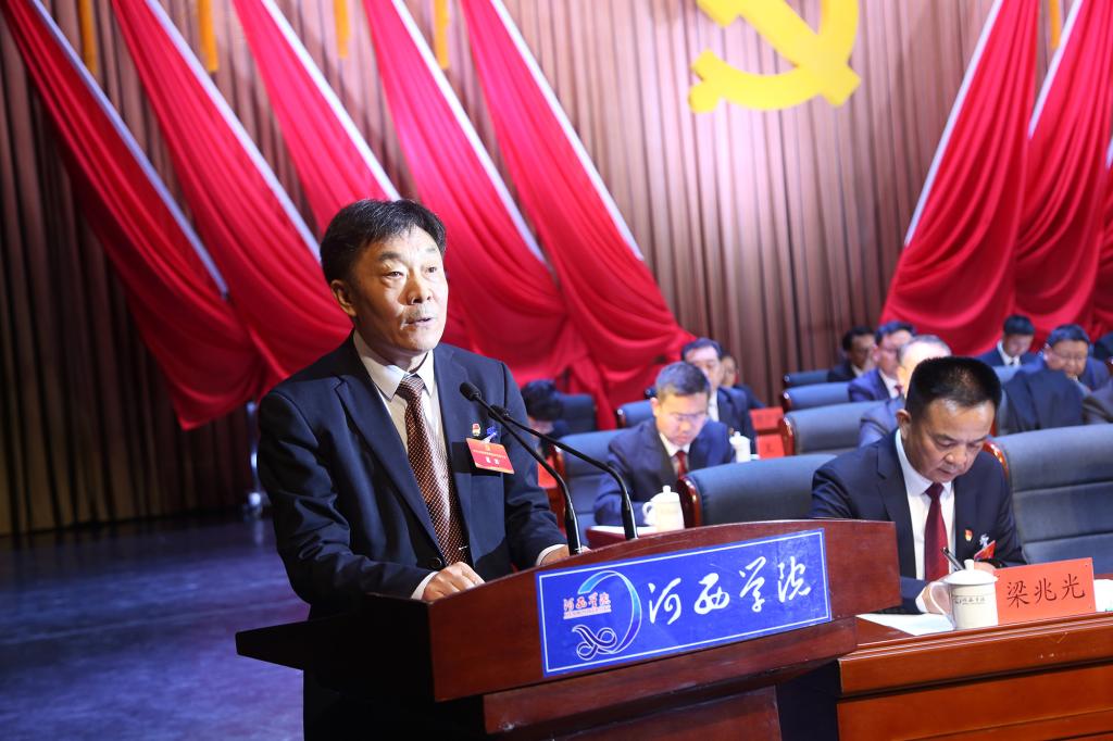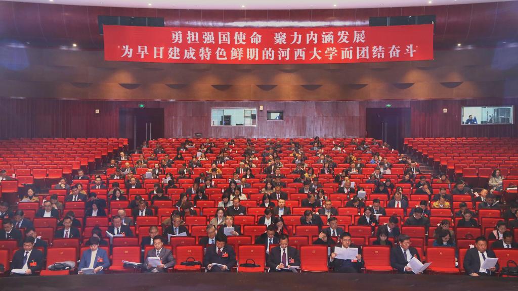 大会的主题是:高举中国特色社会主义伟大旗帜,以习近平新时代中国特色社会主义思想为指导,全面贯彻党的教育方针,坚持社会主义办学方向,落实立德树人根本任务,勇担强国使命,聚力内涵发展,全力构建高质量人才培养体系,坚持“做足河西文章、产出特色成果、建强丝路名校”,团结带领全校师生员工,守正创新,锐意改革,踔厉奋发,勇毅前行,为早日建成特色鲜明的河西大学而团结奋斗!