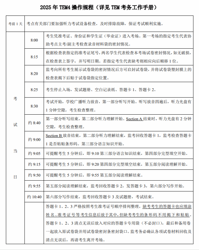2025年全国高校英语专业四级考试 时间安排及考生须知